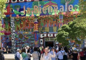 Traditionally I try to photograph the status of world through Architecture Biennale, but this year I visited the Art Biennale, and here also I found stimulus to understand better the main world trends. The wars made absence of Russia Federation and Israel, among the most interesting pavilions, just when we should to understand exactly what their people express. The main countries in Western World in this year are aligned to basic principles of woke culture (Title; Foreigners Everywhere): any type of art, also the more primitive, originated in the most poor countries, especially in Africa, is better than any white culture of once called civilised world. Starting from Italian pavilion, with a colourful Mexican facade, where only one or two Italians artists are. presented, and which is full of operas coming from any South American country, the most primitive and Indios type you can imagine. USA show rich operas of Jeffrey Gibson made by cheap gifts of white people to American Natives, small mirrors and coloured glass pearls, representing an homage to the Natives culture. Sculptures, statues. portraits, in a natural scenario of primitive landscape are filling the big space, putting the visitors in an hypnotic vision of tribes life. Traditional dancing and relative sumptuous dresses give rhythm through videos. UK pavilion is full of Africa arts exhibitions, remembering cultures not so empowered during British colonisation, again in a wonderful natural environment created through many videos. Nordic countries insist on local Natives culture with a lot of products artisanal manufactured, in wood, coloured tissues and dresses, with Denmark exhibition of Inuit culture of a remote north area of Greenland, very poor, semidesert and with ice-limited conditions of people, through renna bones sculptures and photos of real living scenes.